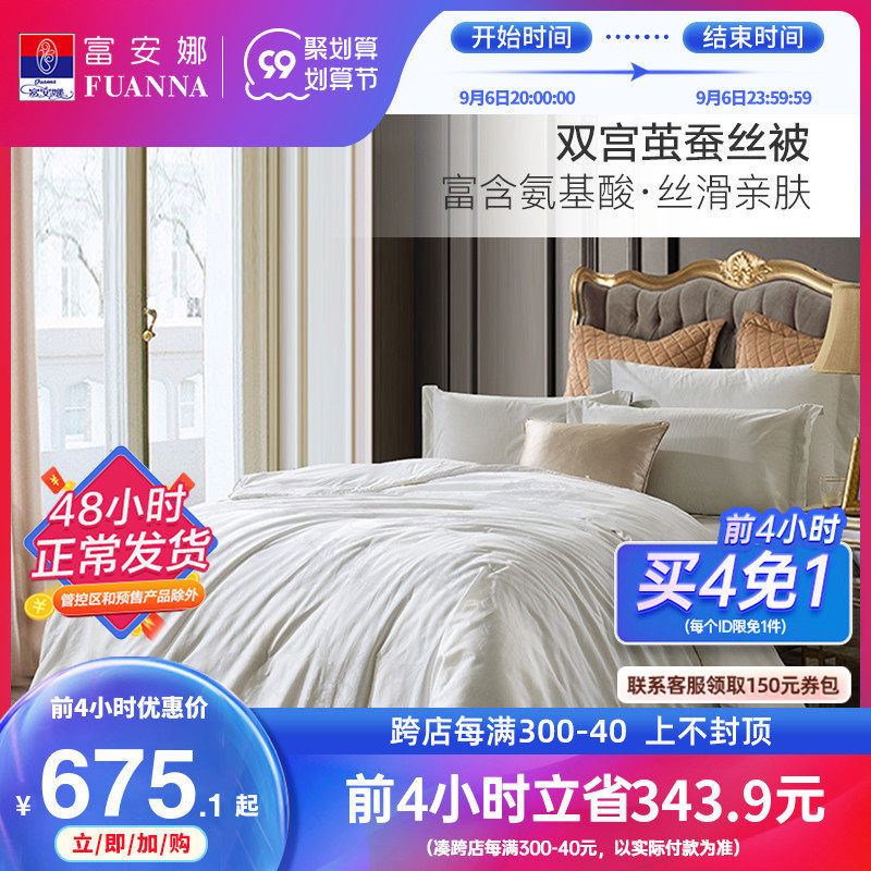 券 50元销量45富安娜蚕丝被100桑蚕丝 纯棉双宫桑蚕丝子母被冬厚被子二合一被芯