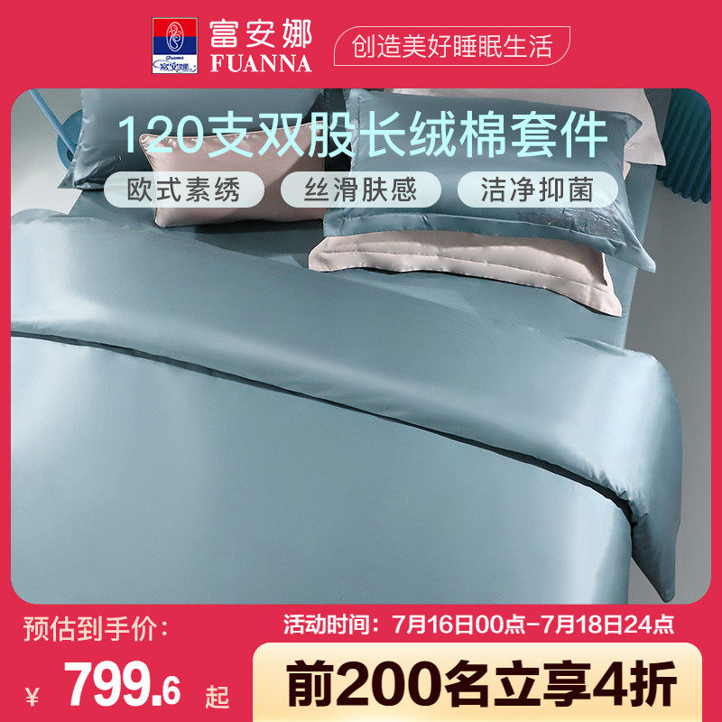 券 10元销量100富安娜家纺120支双股长绒棉床单被套全棉纯棉四件套欧式床上用品