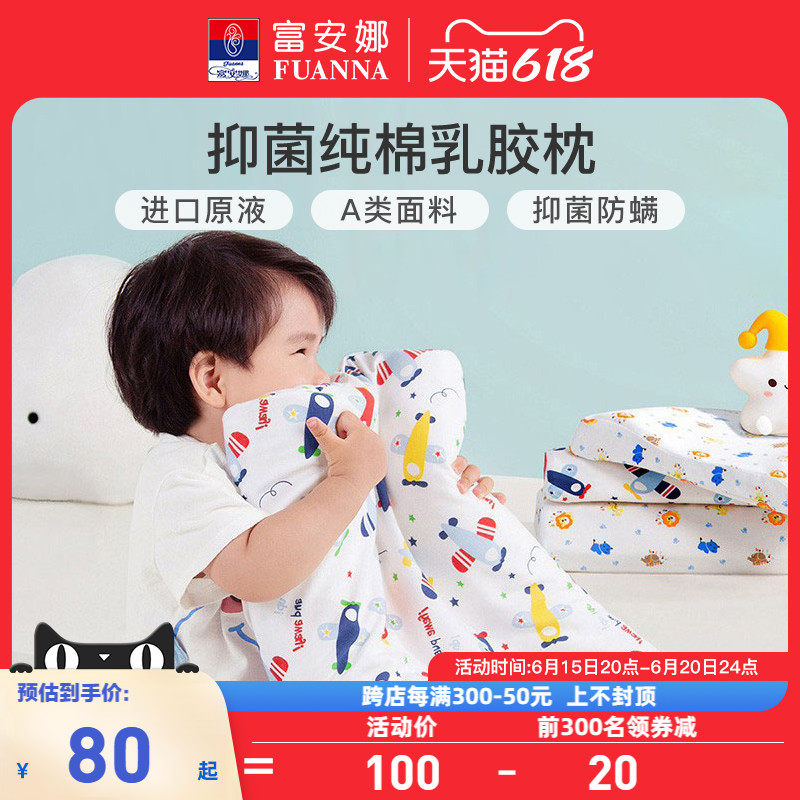 券 40元销量700富安娜泰国乳胶枕护颈枕颈椎枕男天然橡胶枕儿童枕头学生宿舍枕芯