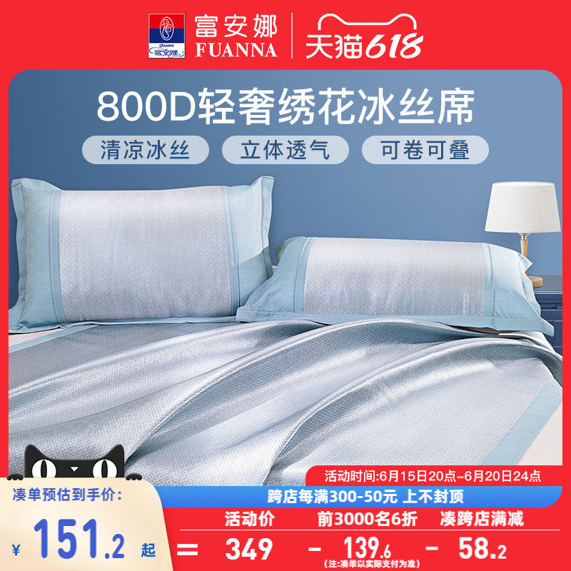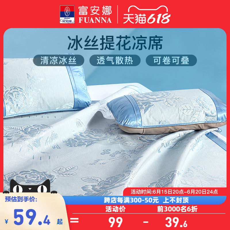 券 20元销量2000富安娜冰丝凉席夏天床席学生宿舍夏凉席夏季床笠款冰丝空调软席子