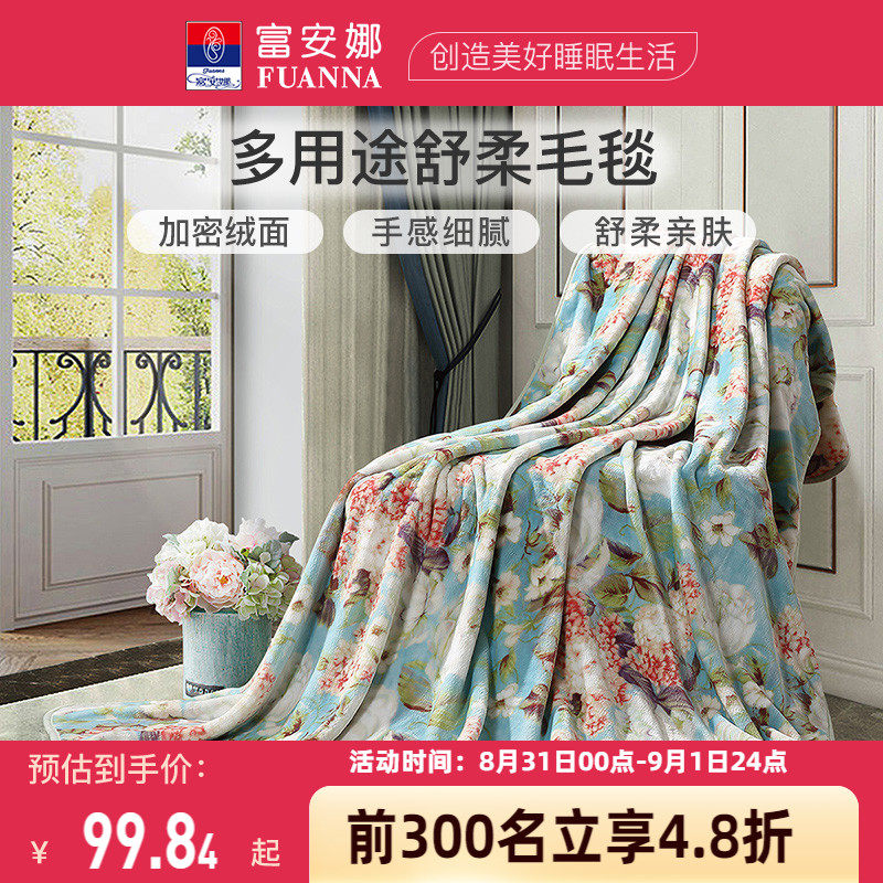 券 10元销量100富安娜毛毯毛巾被冬季空调毯子法兰绒珊瑚绒毯午睡舒柔绒毯沙发毯