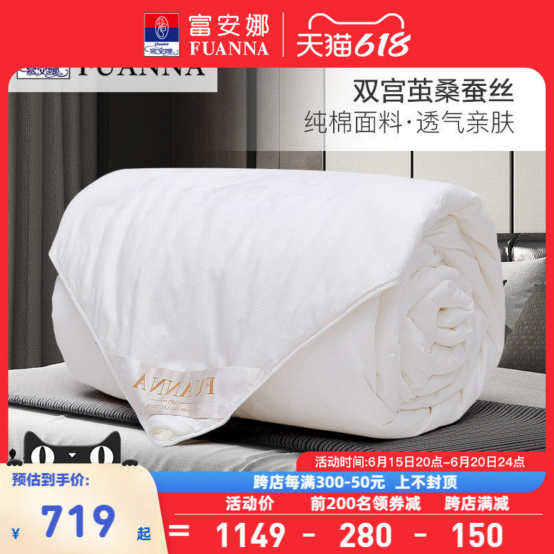 券 10元销量50富安娜保暖全棉双宫茧桑蚕丝被100桑蚕丝 春秋被芯空调被冬厚被子