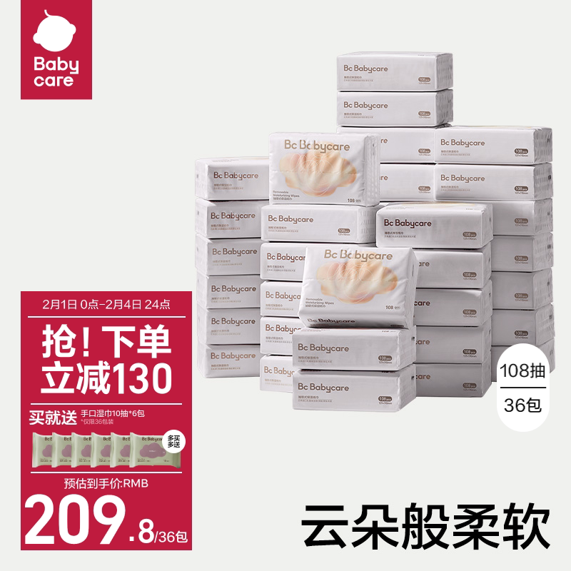 券 69元销量400babycare云柔巾新生婴幼儿童专用宝宝乳霜纸巾家庭实惠便携大包装