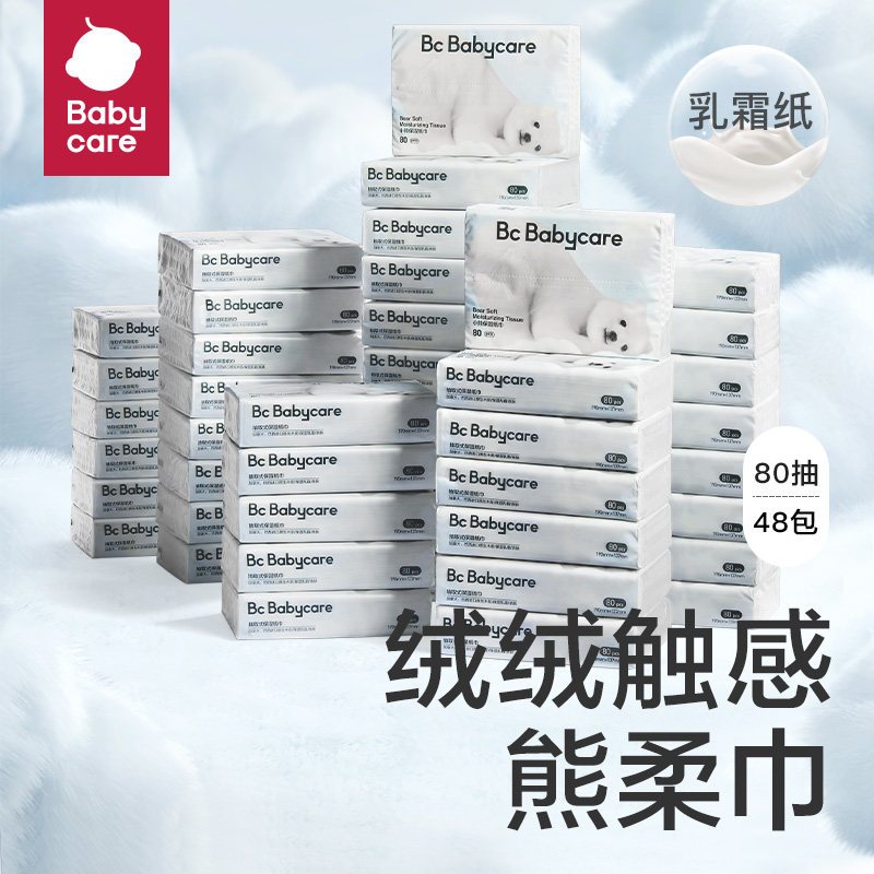 券 80元销量1000babycare熊柔巾乳霜保湿云柔抽取式纸巾80抽48包