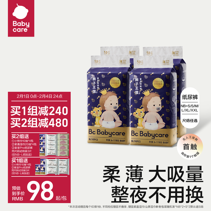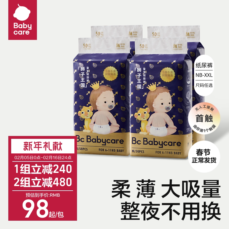 券 146元销量400babycare皇室狮子王国纸尿裤超薄透气婴儿宝宝尿不湿尿片任选4包