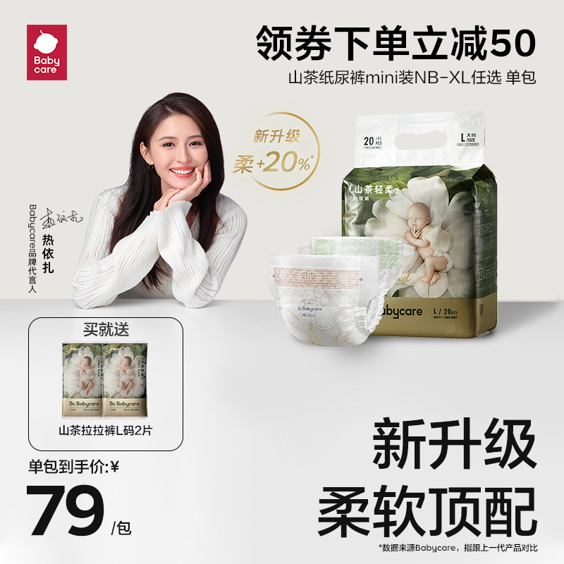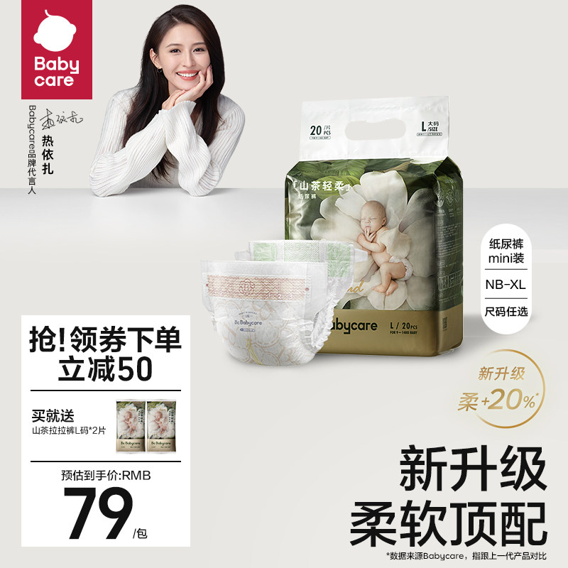 券 50元销量2000babycare山茶轻柔纸尿裤bbc新生儿尿不湿超薄透气mini装尺码任选