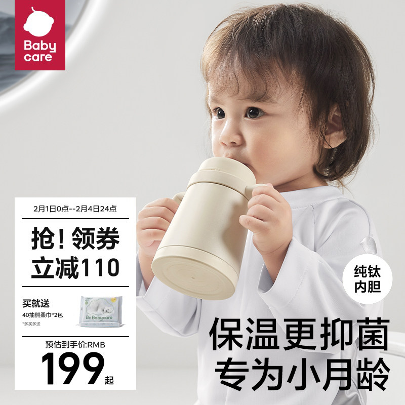 券 110元销量1000babycare小月龄保温杯吸管奶瓶不锈钢学饮婴幼儿宝宝钛空儿童水杯