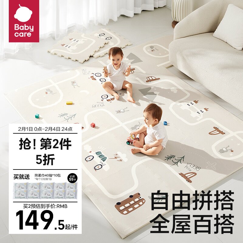 券 50元销量100babycare宝宝爬行垫可折叠加厚xpe儿童地垫客厅家用婴儿爬爬垫子