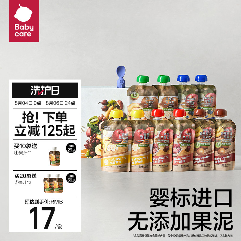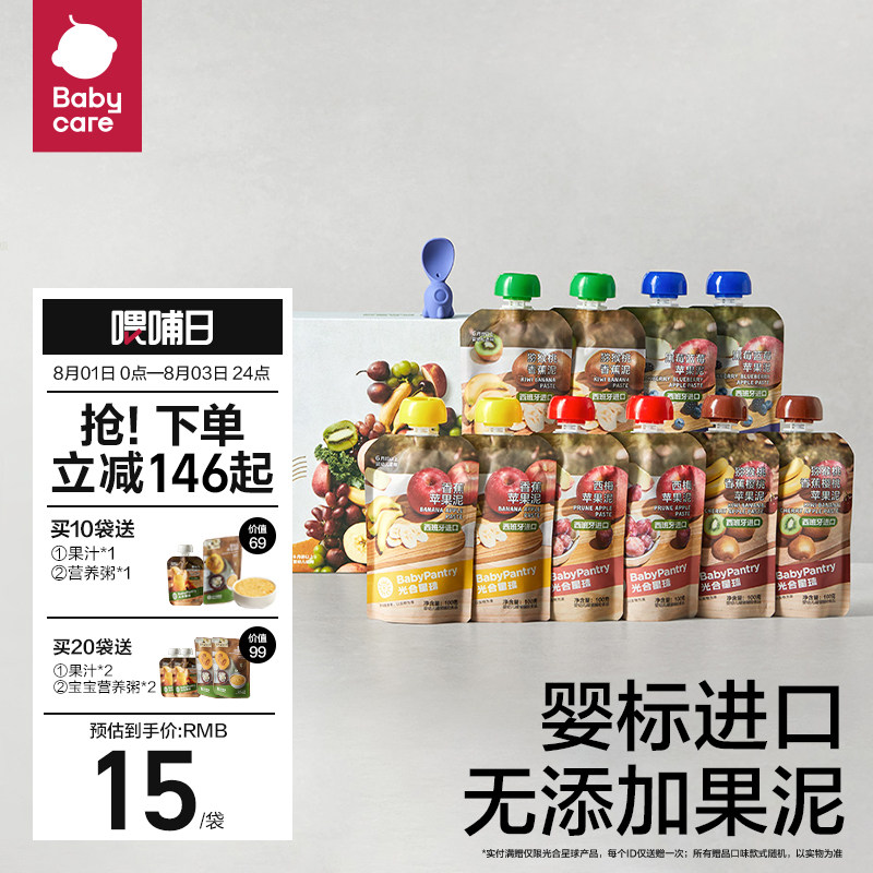 券 130元销量300babycare光合星球婴幼儿水果泥西梅泥10袋宝宝辅食零食进口无添加