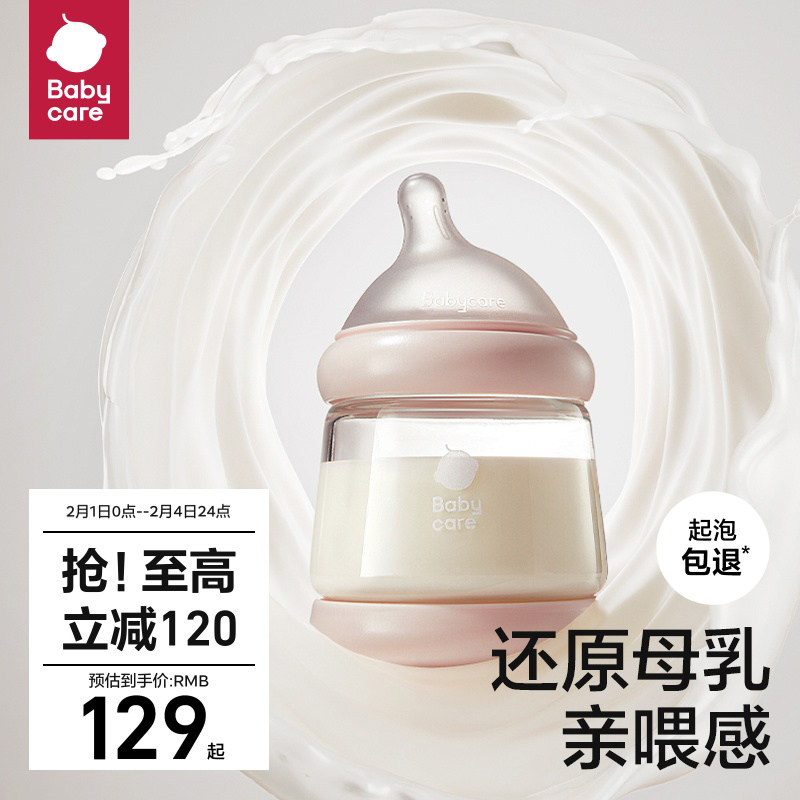 券 100元销量1000babycare歪头玻璃奶瓶新生婴儿宽口径仿母乳0-3个月防胀气储奶瓶