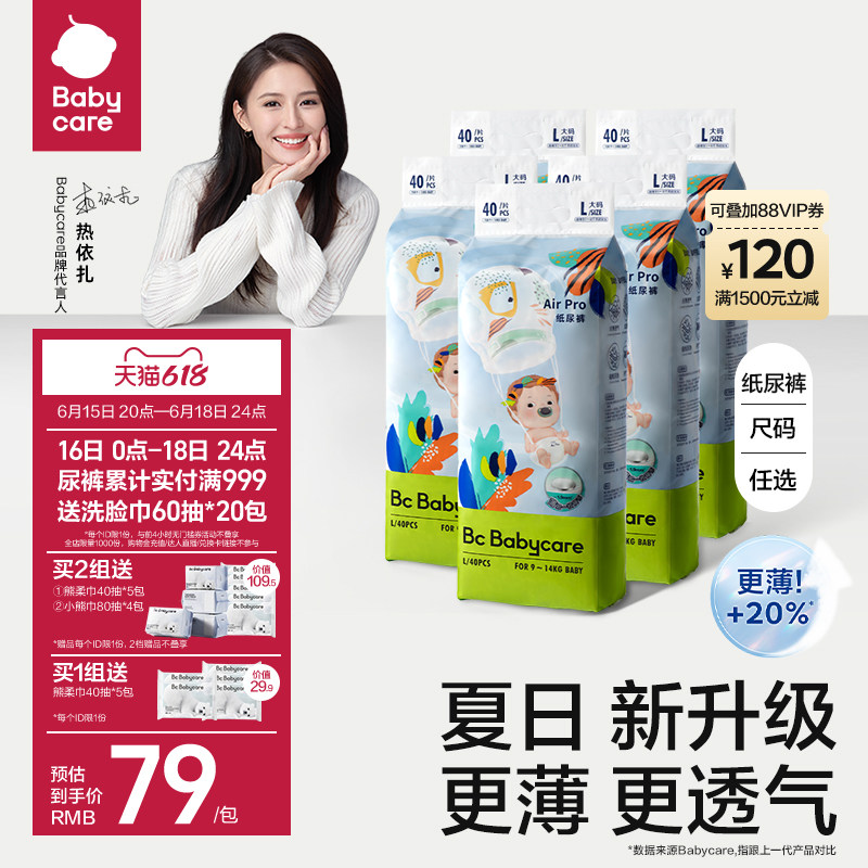 券 100元销量6000【618抢购】babycare纸尿裤Air pro夏季超薄透气bbc尿不湿任选5包