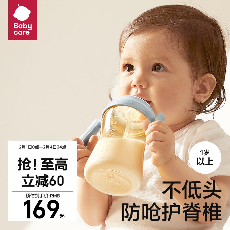 券 40元销量1000babycare歪头吸管奶瓶一岁3岁以上宝宝学饮杯婴儿防胀气ppsu奶瓶