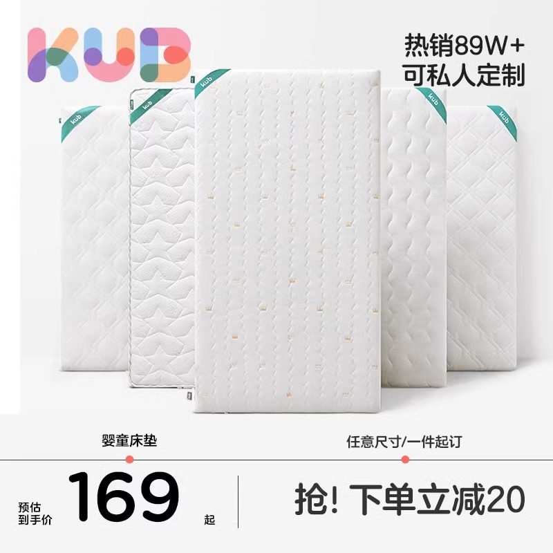 券 20元销量9KUB可优比天然椰棕婴儿床棕垫宝宝床垫新生儿童乳胶床垫硬棕定做