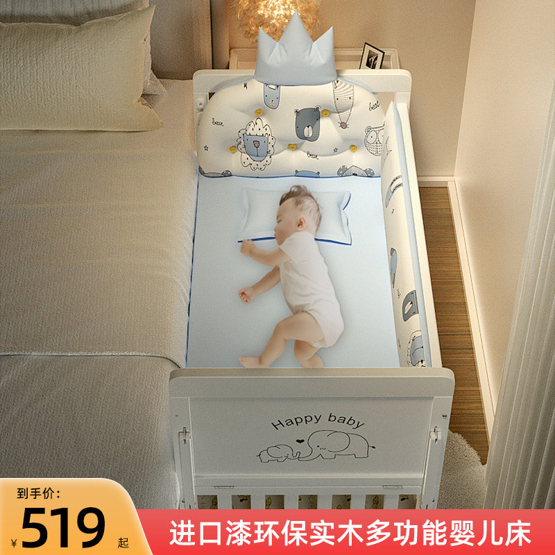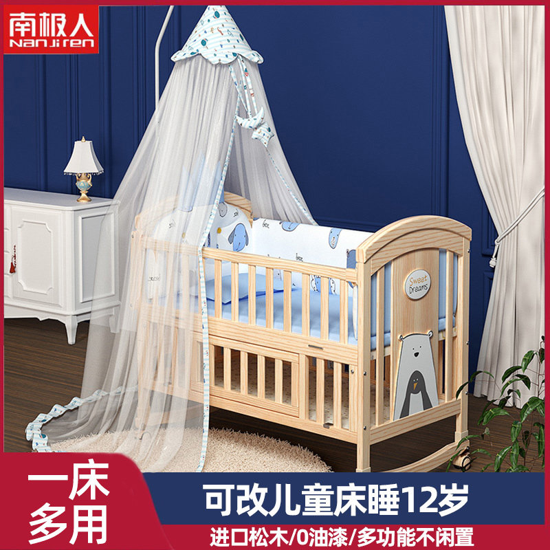 券 100元销量50南极人婴儿床实木无漆多功能宝宝床儿童新生儿可移动摇篮拼接大床