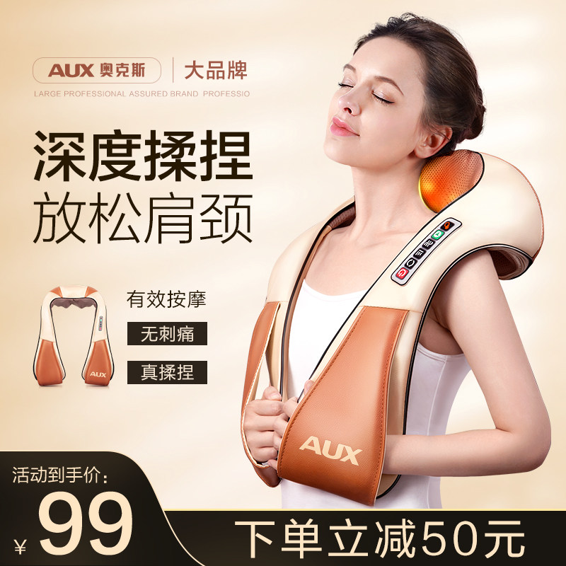 券 50元销量3000奥克斯肩颈椎按摩器颈部全身多功能揉捏脖子电动加热肩膀按摩披肩