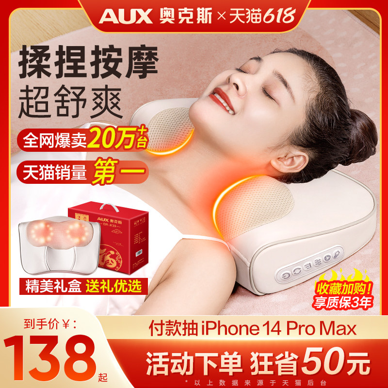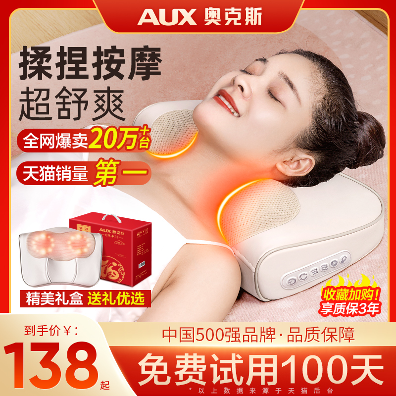 券 50元销量10000奥克斯颈椎按摩器颈部腰部背部多功能腰椎靠垫全身电动肩部揉捏枕