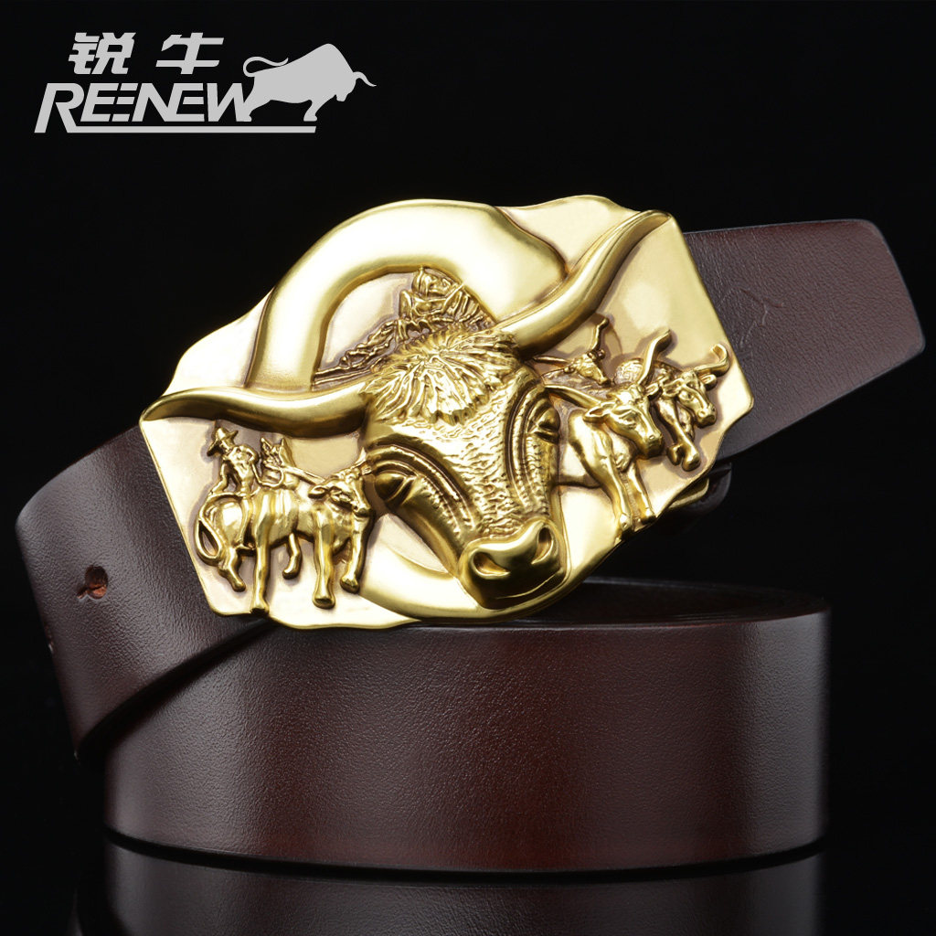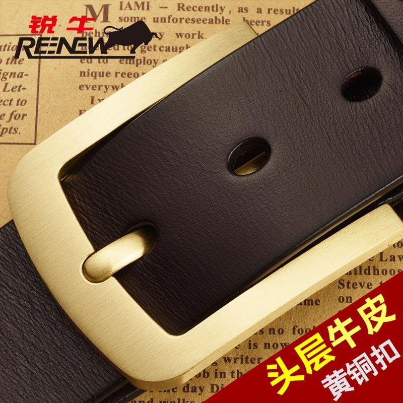 券 800元销量0锐牛皮带男士黄铜扣头层牛皮复古简约时尚个性装饰手工皮带潮腰带