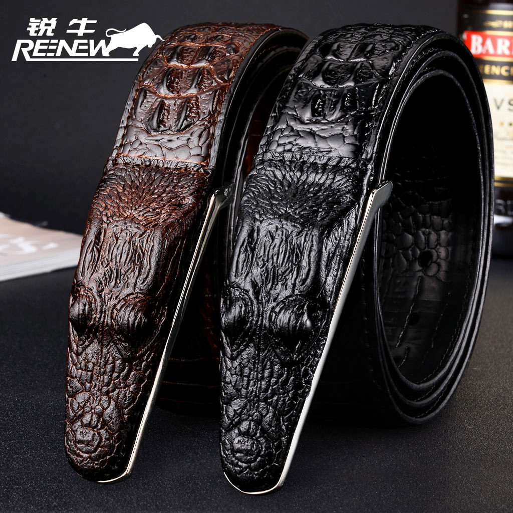 券 5元销量10锐牛鳄鱼头皮带男潮流真皮年轻人百搭韩版简约个性霸气时尚裤腰带