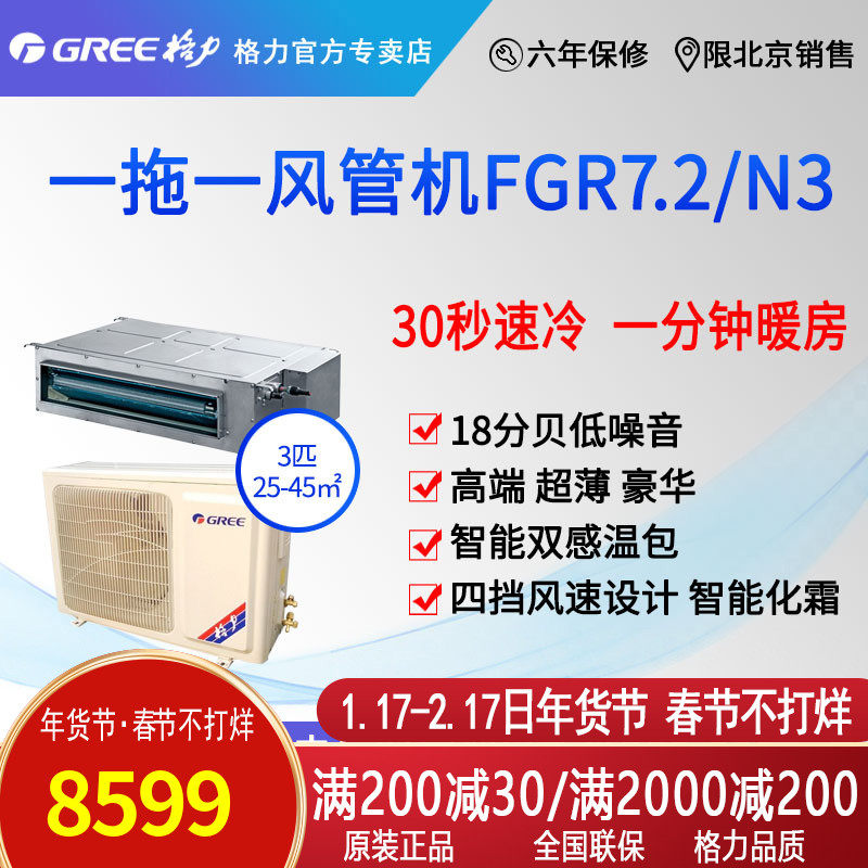 券 100元销量0Gree北京格力FGR7 2三P变频风管机中央空调包安装辅材热销