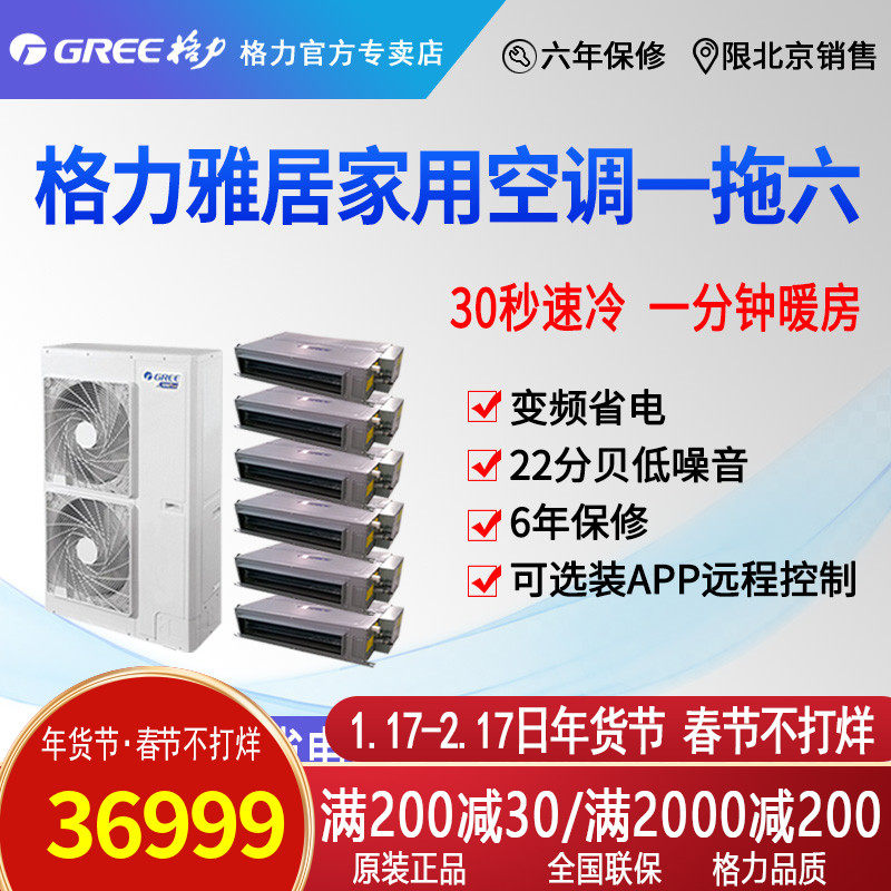 券 300元销量0北京格力GMVH140WLF雅居一拖六中央空调变频含安装材料费热销爆款