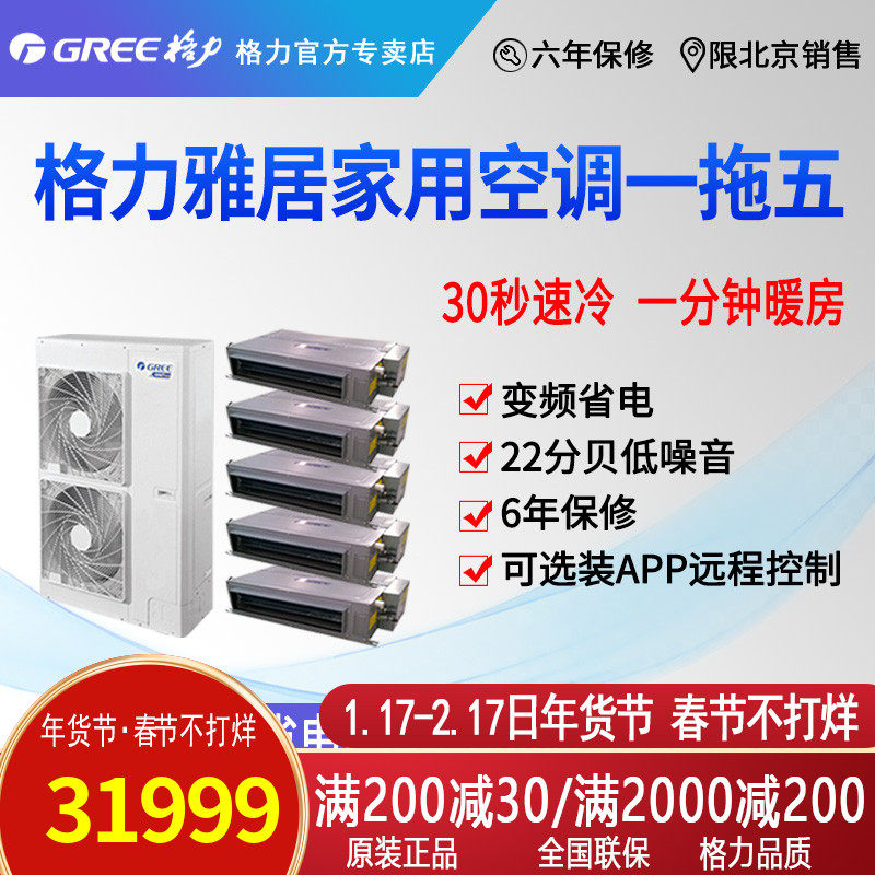 券 300元销量0北京格力GMVH140WLF雅居一拖五中央空调变频含安装材料费热销
