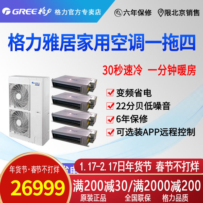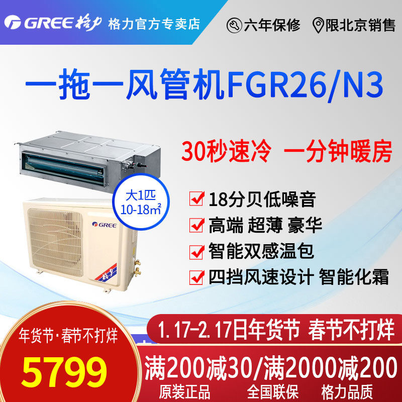 券 100元销量0Gree北京格力FGR26大1P变频风管机中央空调包安装辅材热销