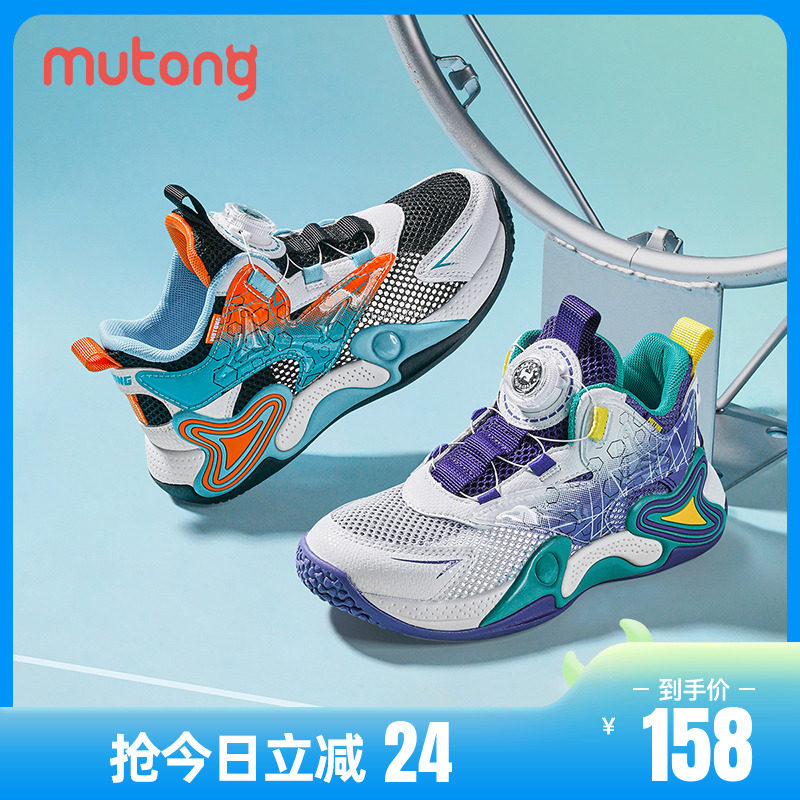券 24元销量300牧童童鞋专业儿童篮球鞋2023夏季新款透气网面男童旋转纽扣运动鞋