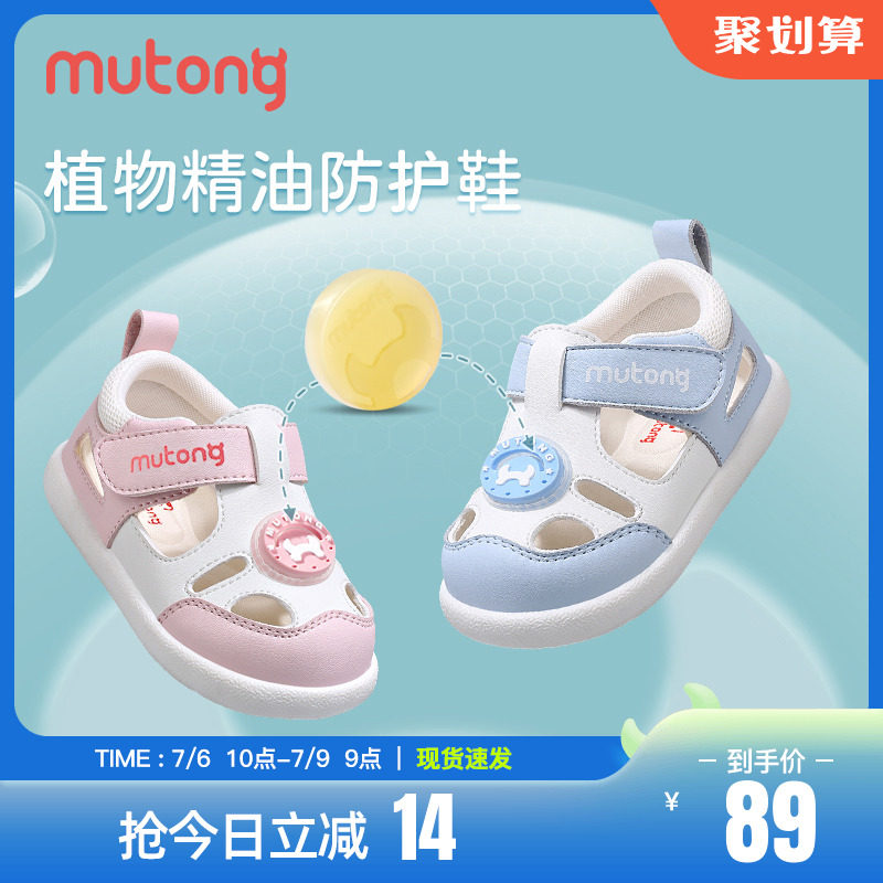 券 14元销量2000牧童夏季精油香片防护鞋2023新款宝宝包头凉鞋软底学步鞋男女童鞋