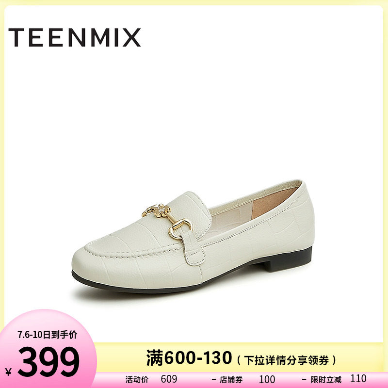 券 100元销量500天美意英伦乐福鞋复古单鞋平底小皮鞋一脚蹬女鞋2023春新AG016AM3