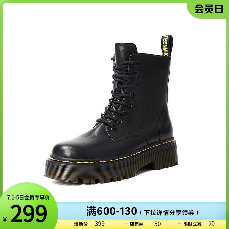 券 50元销量18天美意厚底马丁靴女加绒保暖皮靴短靴子冬季1MDXNDZ1