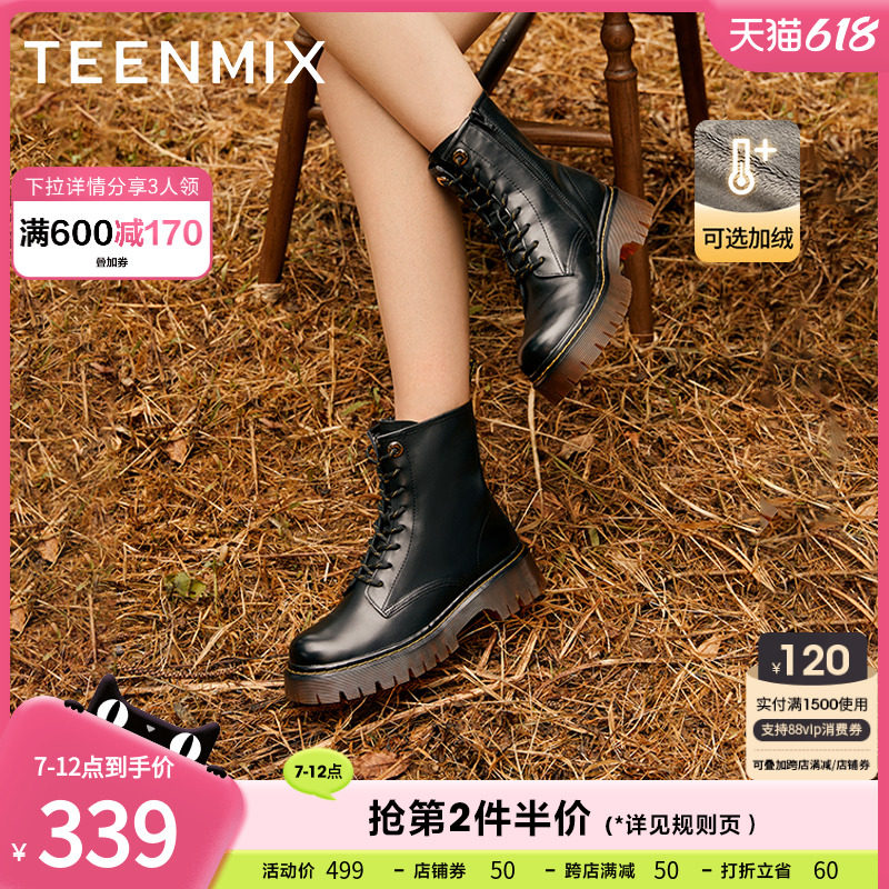 券 50元销量78天美意休闲系带厚底马丁靴女加绒短靴2022冬新款商场同款6PO60DZ2