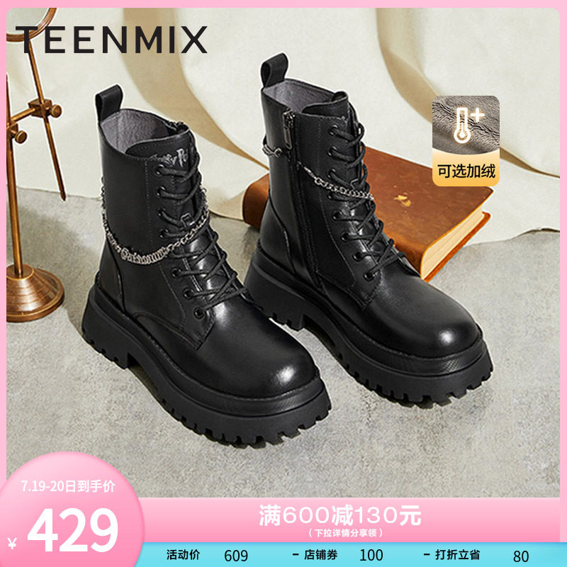 券 100元销量10天美意英伦马丁靴女工装靴加绒短靴子2022冬新款商场同款6OO40DD2