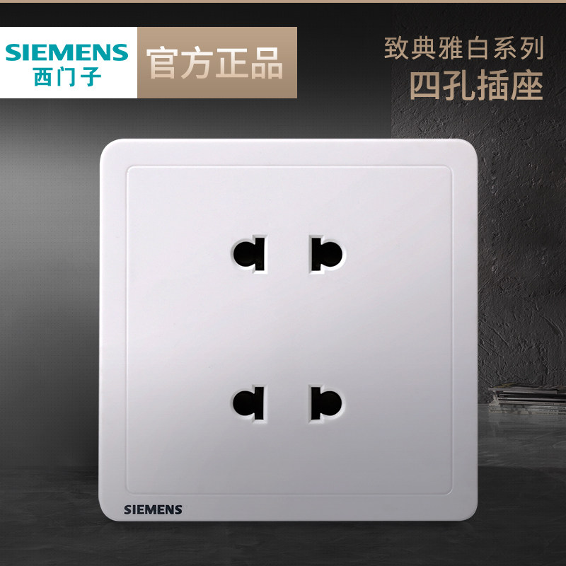 券 4元销量10西门子10A四孔插座致典雅白色家用墙壁暗装电源插座面板