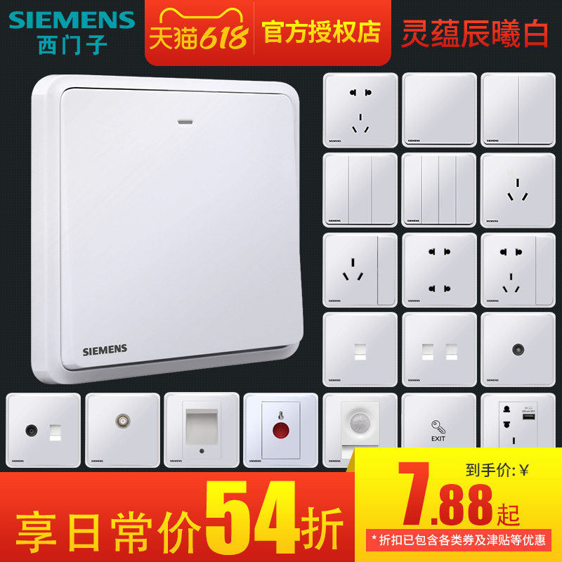 券 1元销量5西门子开关插座面板灵蕴白色86型墙壁暗装五孔家用电源全屋套餐