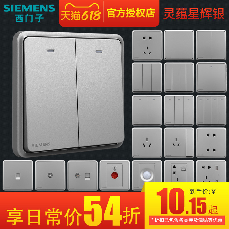 券 1元销量19西门子开关插座面板灵蕴银灰色86型墙壁暗装五孔家用电源全屋套餐