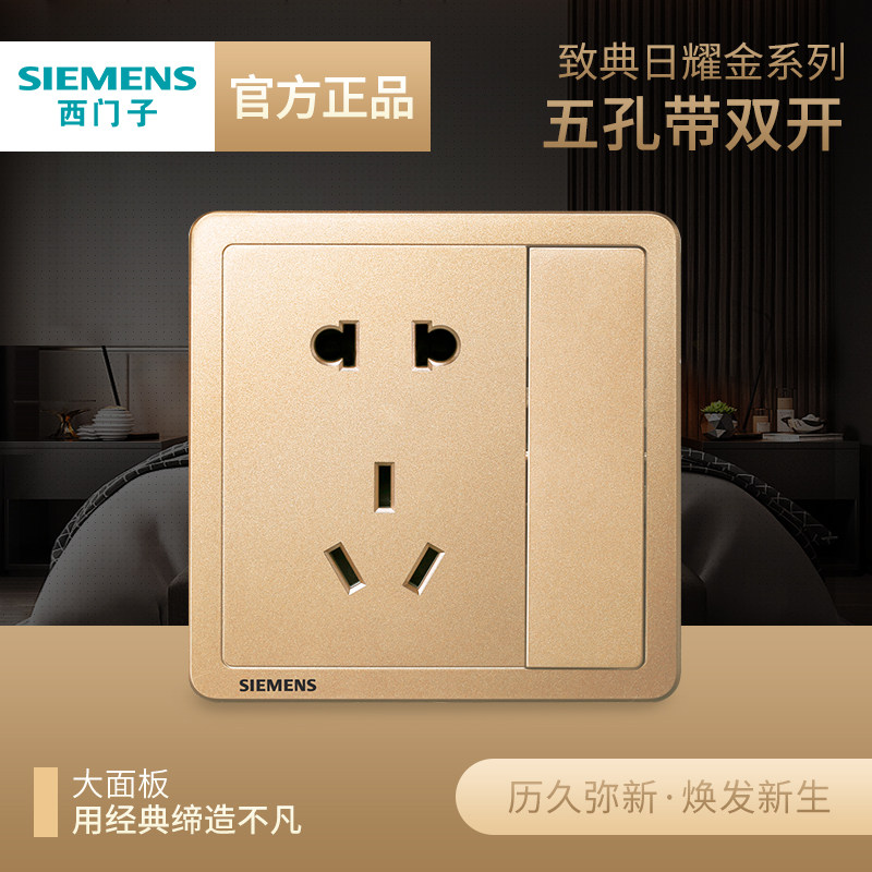 券 4元销量10西门子五孔插座带双控开关面板致典日曜金色86型家用暗装全屋套餐