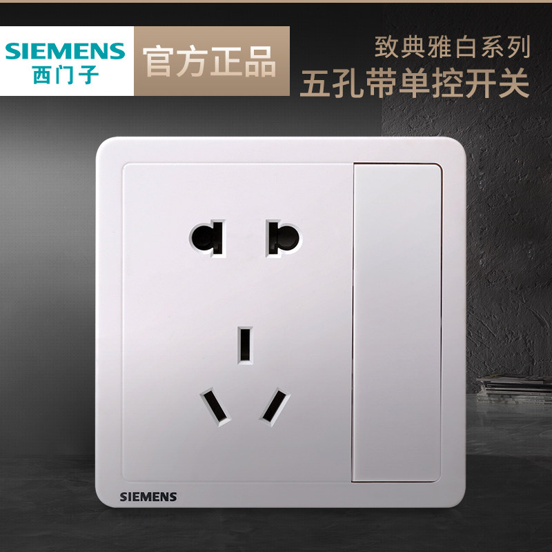 西门子五孔带单控开关插座 致典雅白色家用电源10A二三插面板