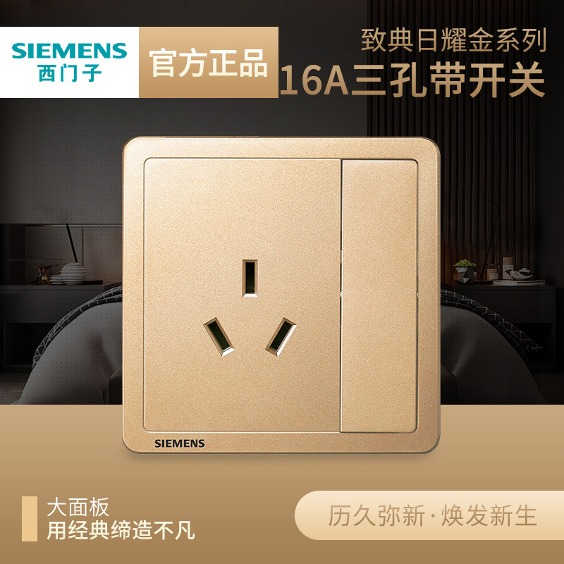 券 1元销量900西门子开关插座面板致典金色86型16a空调一开五孔usb家用墙壁暗装