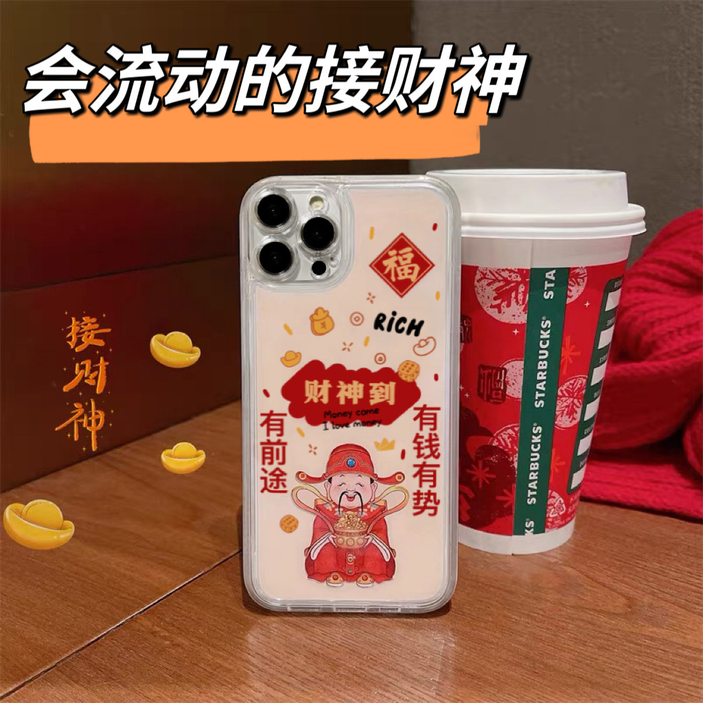 券 3元销量100中国风新年喜庆财神爷个性液体流沙适用苹果15手机壳14ProMax立体全包iPhone13国潮12pro保护套11趣味创意男