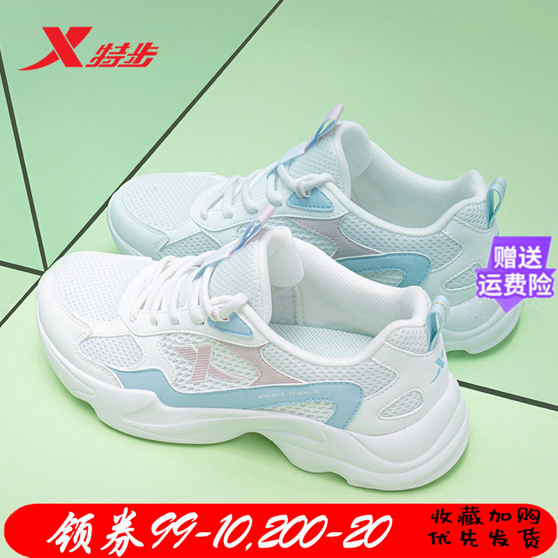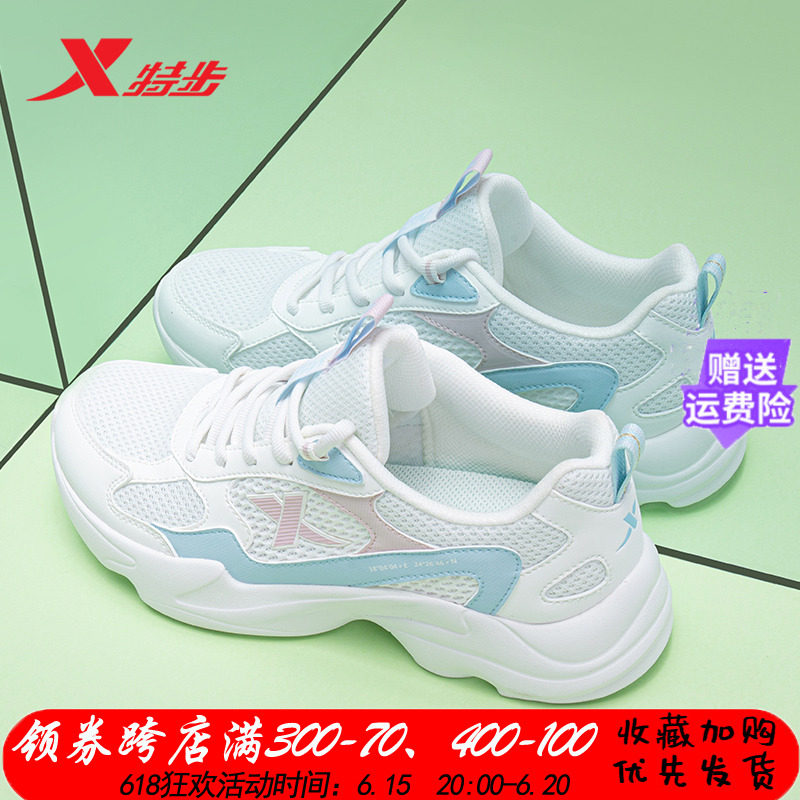 特步女鞋运动鞋网面老爹鞋夏季透气网鞋女士休闲跑步鞋子小白鞋女