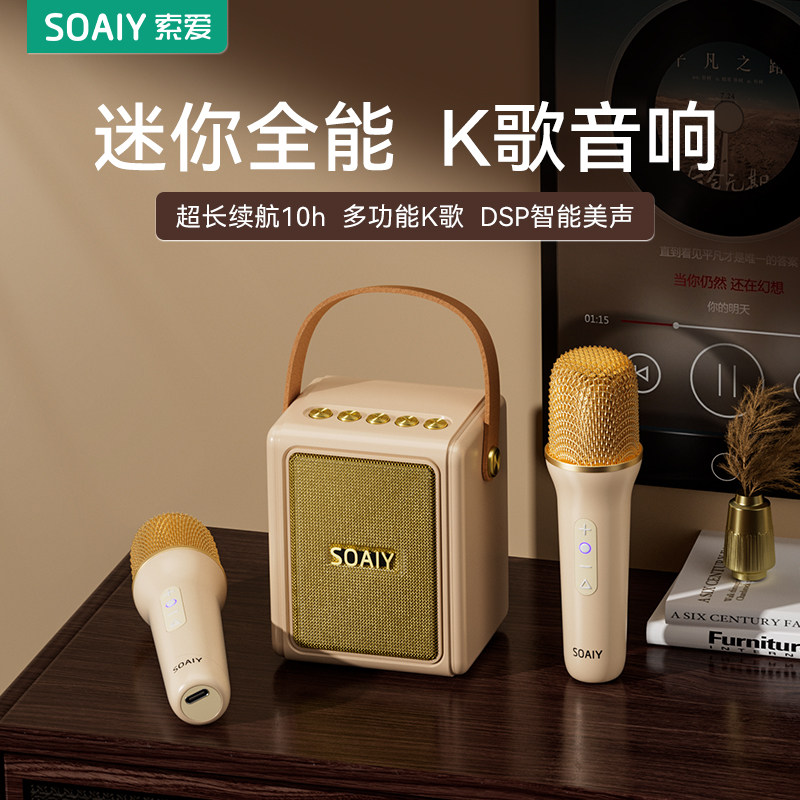 券 10元销量10索爱SK9蓝牙音箱无线麦克风音响K歌话筒户外家庭小型ktv一体套装