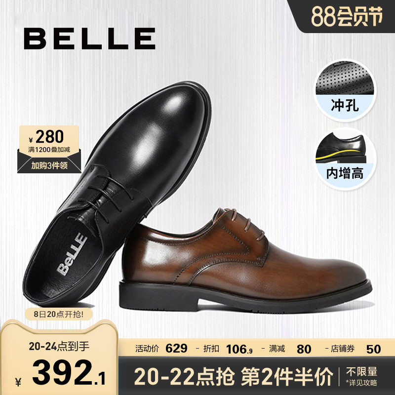券 50元销量2000百丽男鞋商务正装皮鞋男士款内增高德比鞋结婚新郎鞋大码10822CM8