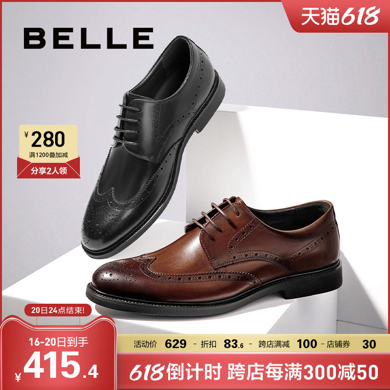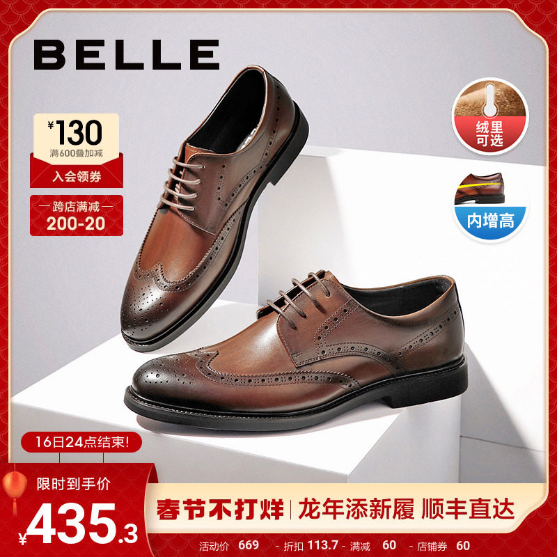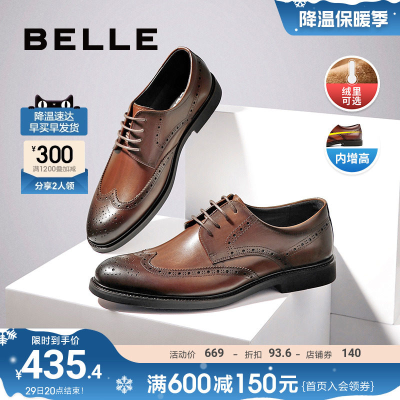 券 60元销量700百丽男鞋秋冬皮鞋男款商务正装布洛克内增高新郎结婚大码89183AM9