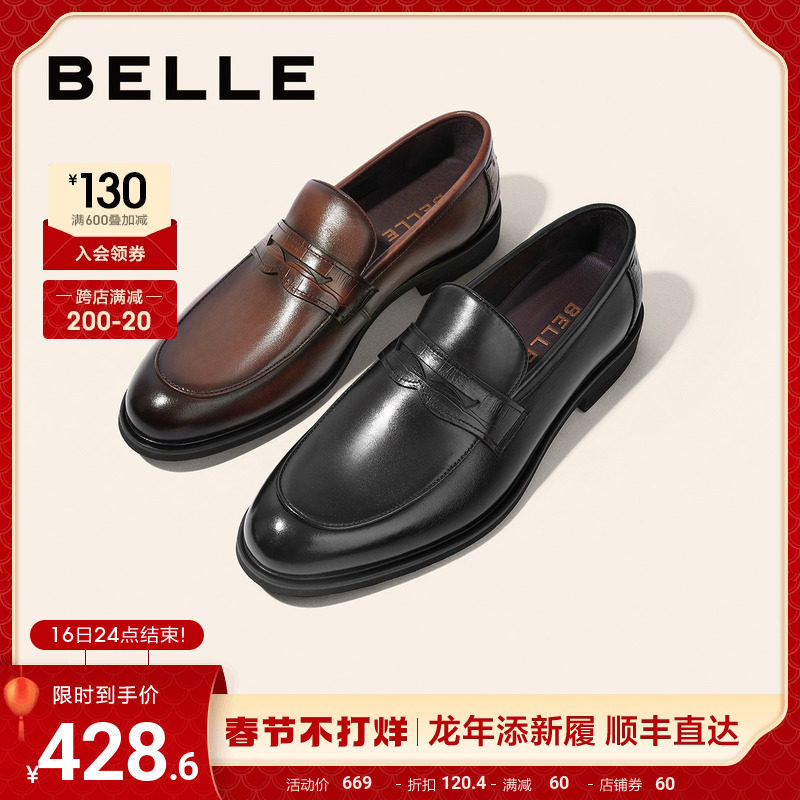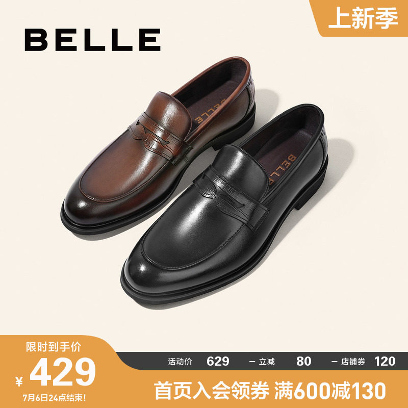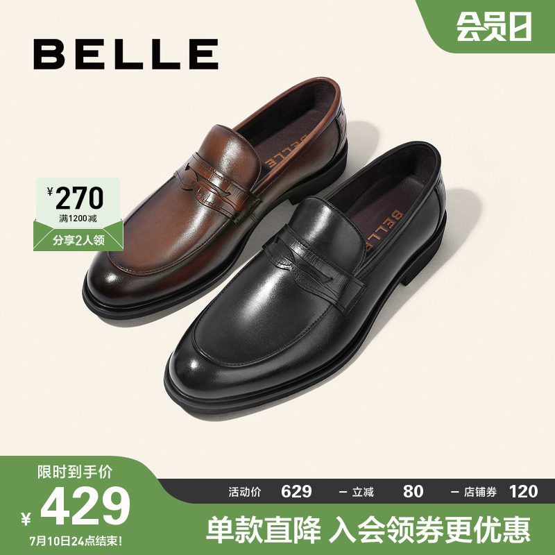 券 120元销量300百丽商务套脚皮鞋男士新款牛皮英伦手工乐福鞋休闲一脚蹬A0632AM2