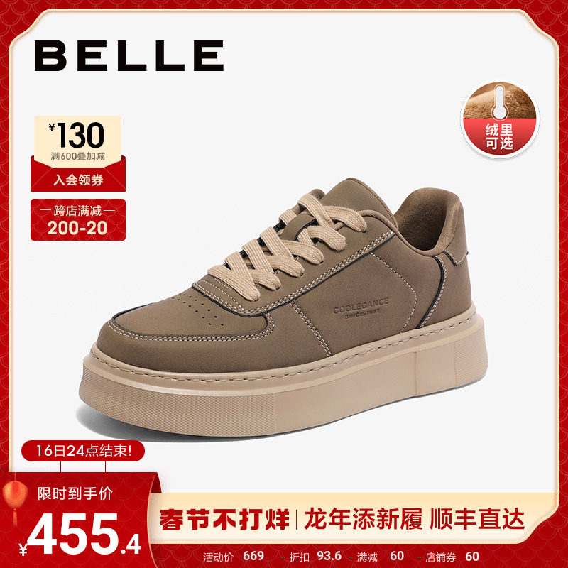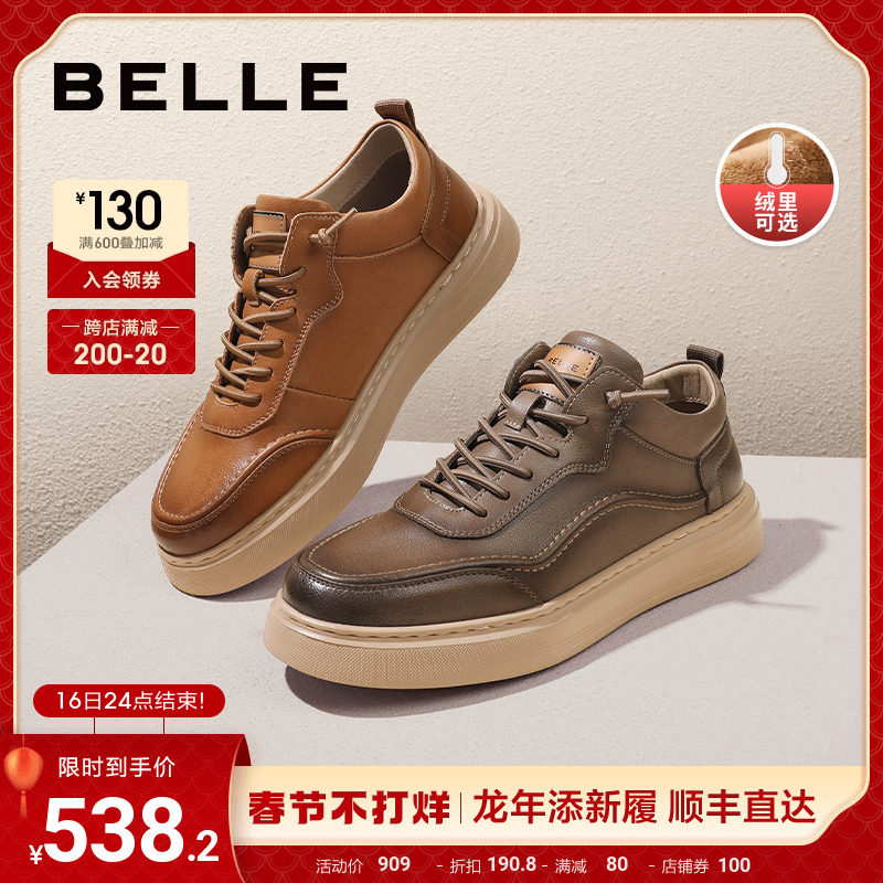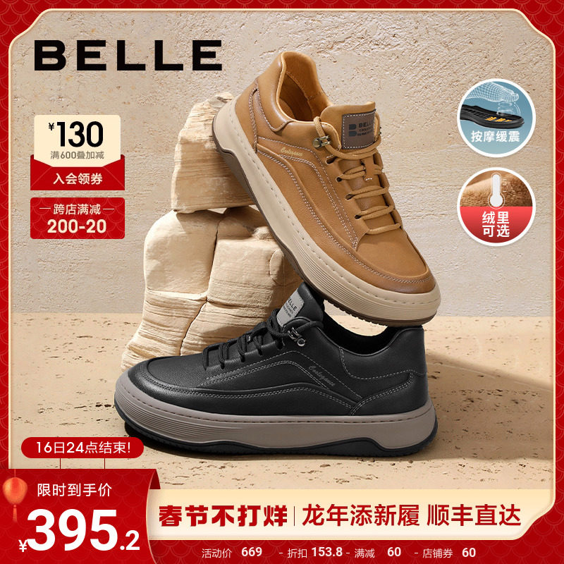 券 100元销量200百丽男鞋休闲鞋男2024春季新款商场同款加绒厚底增高板鞋8FX01AM4