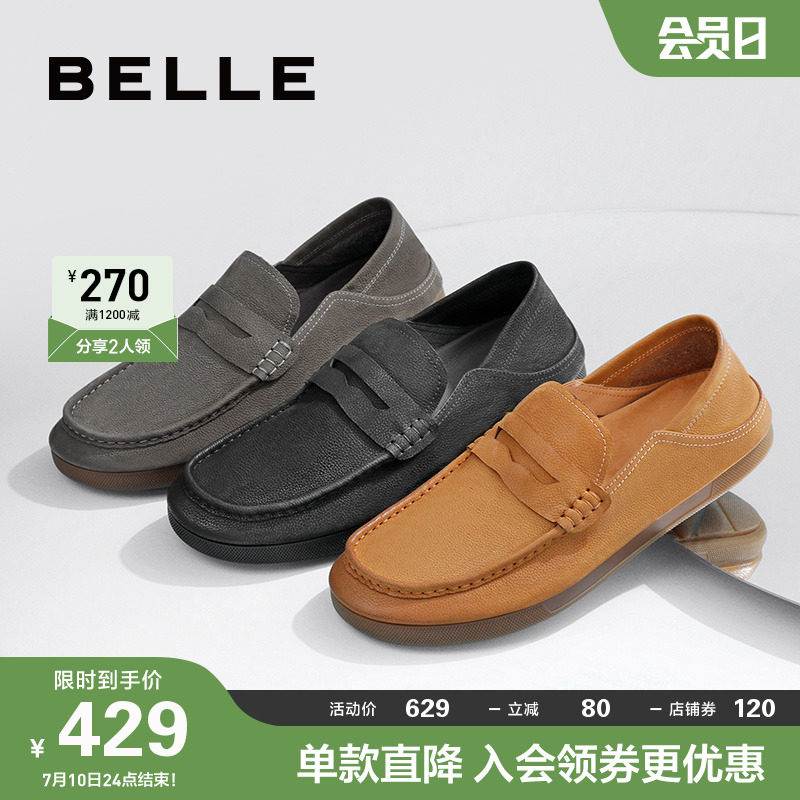 券 60元销量50百丽男鞋乐福鞋男2024新款牛皮一脚蹬休闲皮鞋软底豆豆鞋A1382AM4