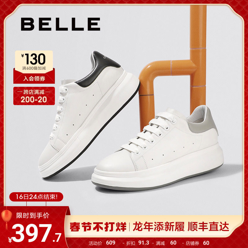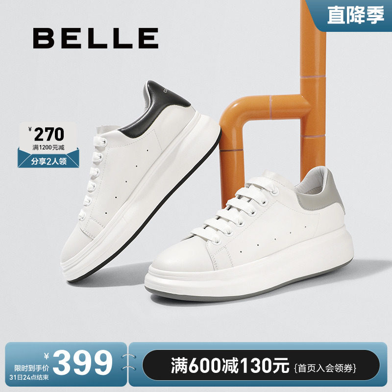 券 120元销量200百丽透气真皮休闲小白鞋男士新款撞色厚底增高板鞋子男款A0615AM2
