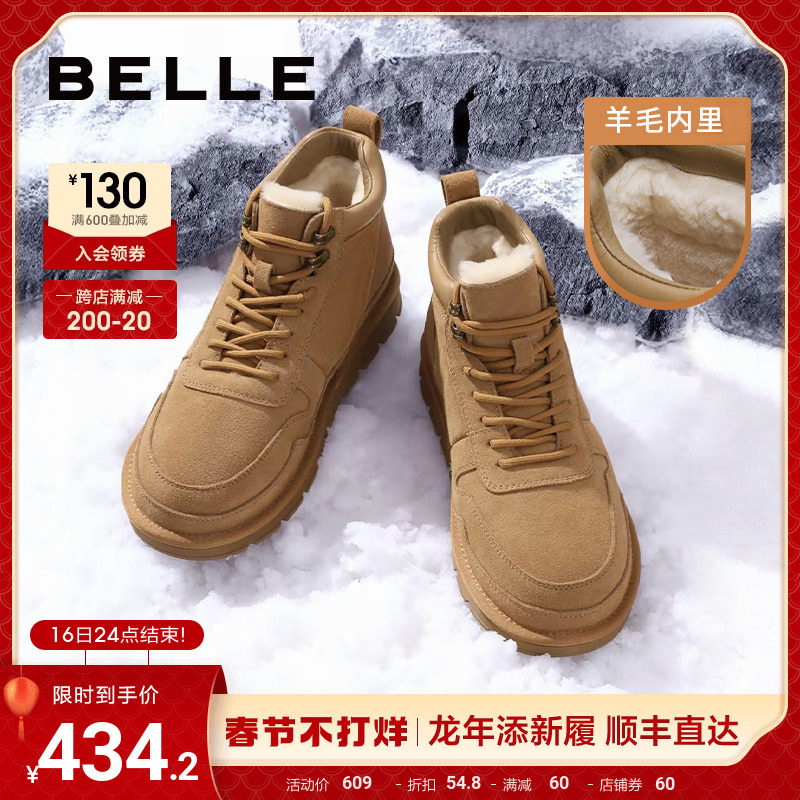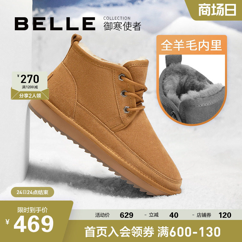 券 120元销量14百丽雪地靴男冬商场同款真皮加绒棉鞋高帮羊毛保暖靴反季7UR01DD2