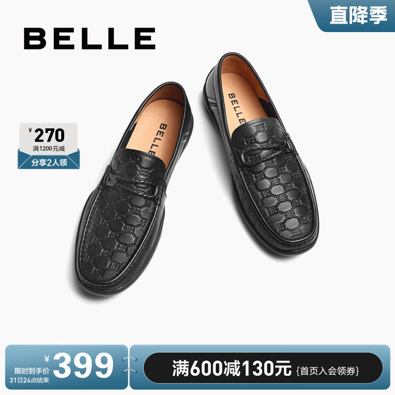 券 120元销量100百丽压花真皮豆豆鞋男新款软底舒适休闲乐福一脚蹬开车鞋A0625AM2