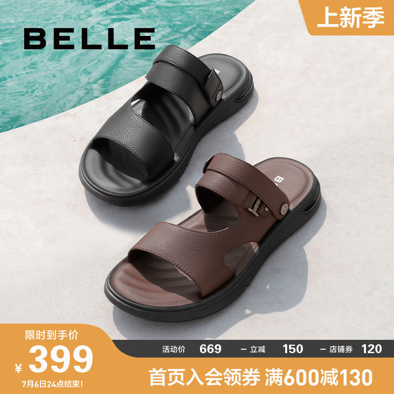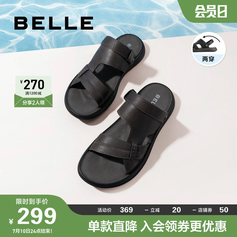 券 120元销量200百丽真皮爸爸凉鞋男2023夏季新商场同款牛皮沙滩拖鞋两用7YG01BL3